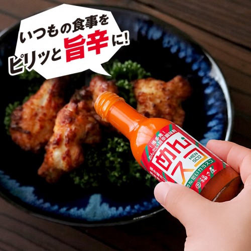 いつもの料理にかけるだけ!簡単に味変ができる、めんたい旨辛調味料。新たな博多土産です!唐揚げやピザや冷奴、坦々麺などの辛い料理にプラスしてさらに刺激的な辛さに!辛いのが好きな方へオススメです。