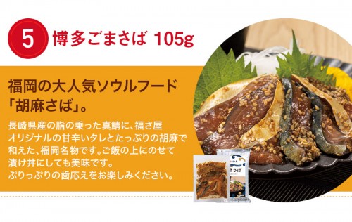 脂の乗ったさばに、福さ屋オリジナルの甘辛いタレとたっぷりの胡麻で和えた福岡名物です。ご飯の上にのせて漬け丼にしても美味です。