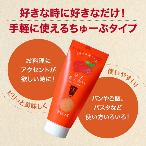 簡単、好きな時に好きなだけ使えるちゅーぶめんたい。お料理のアクセントが欲しい時や、パンやご飯、パスタなどにもささっと使えるスグレモノ!朝の忙しい時間にもおすすめです。
