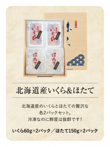 醤油いくら 60g×2パック、ほたて貝柱 150g×2パック |